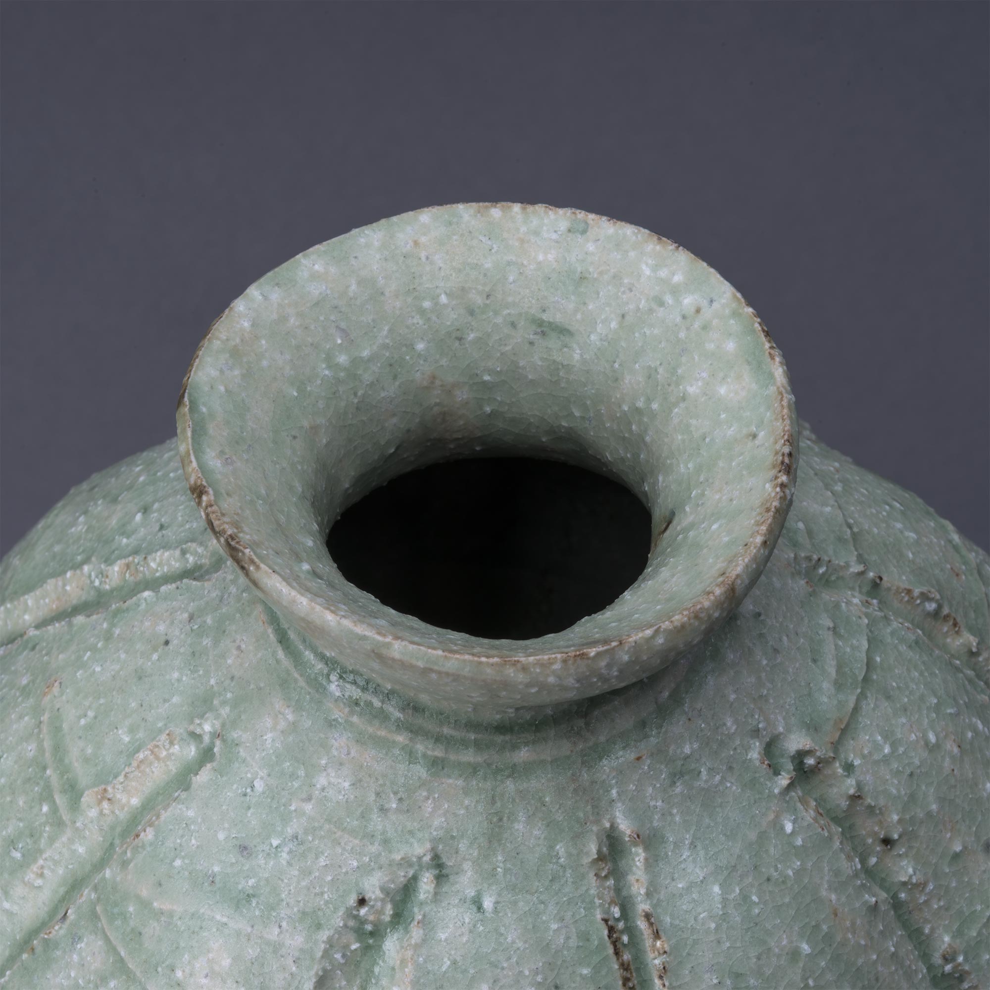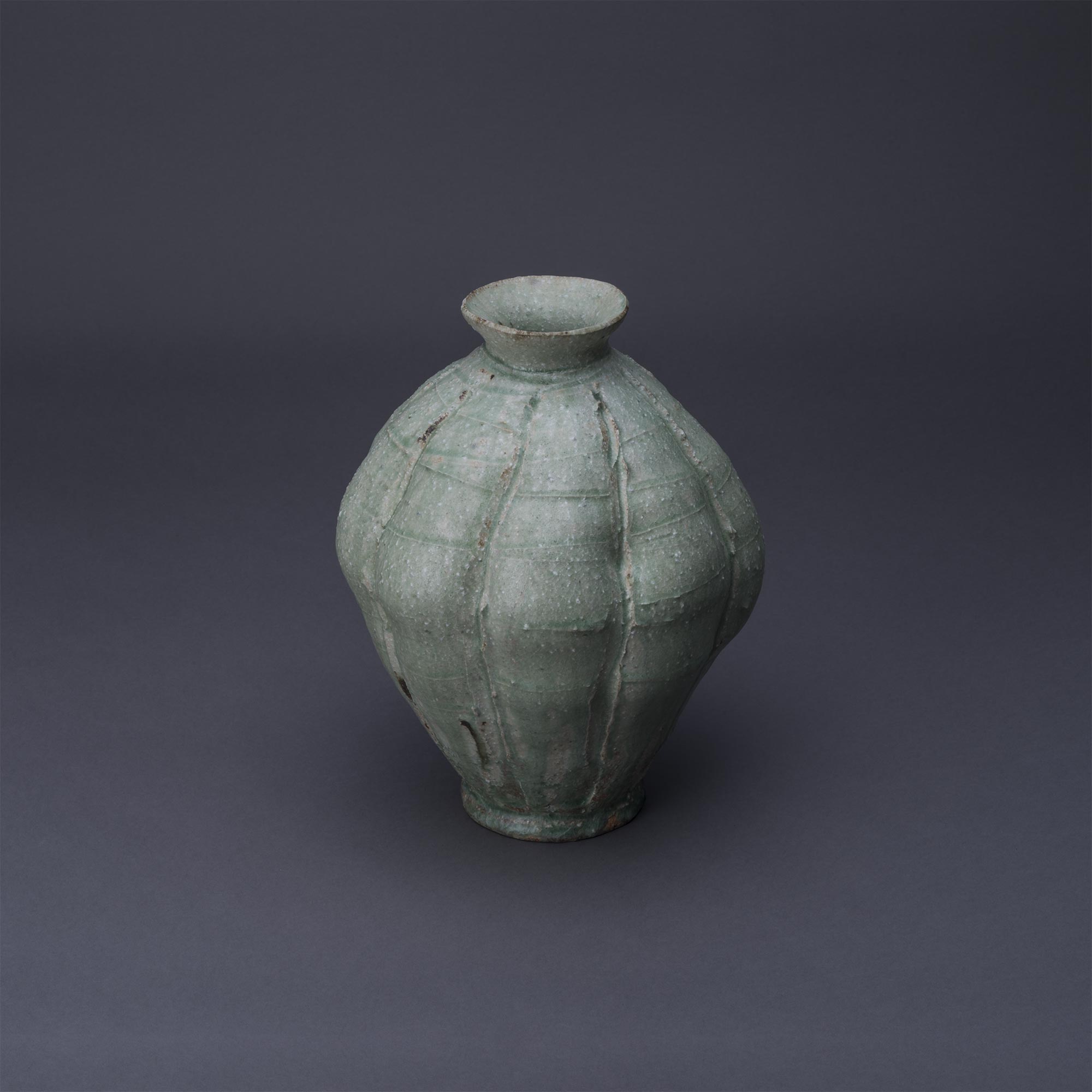 灰釉彩刻線 壷
