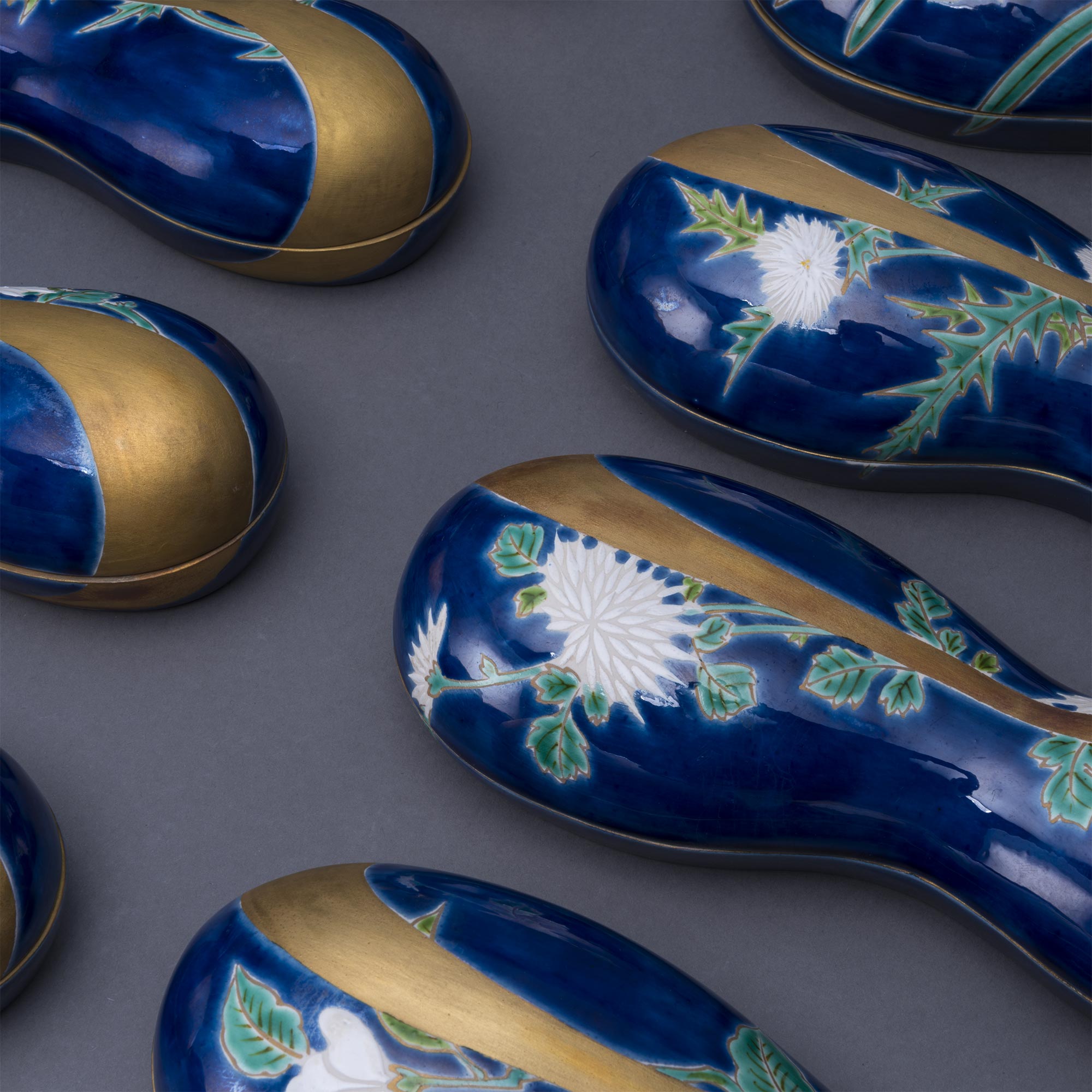瑍白磁菊浮彫 7客
